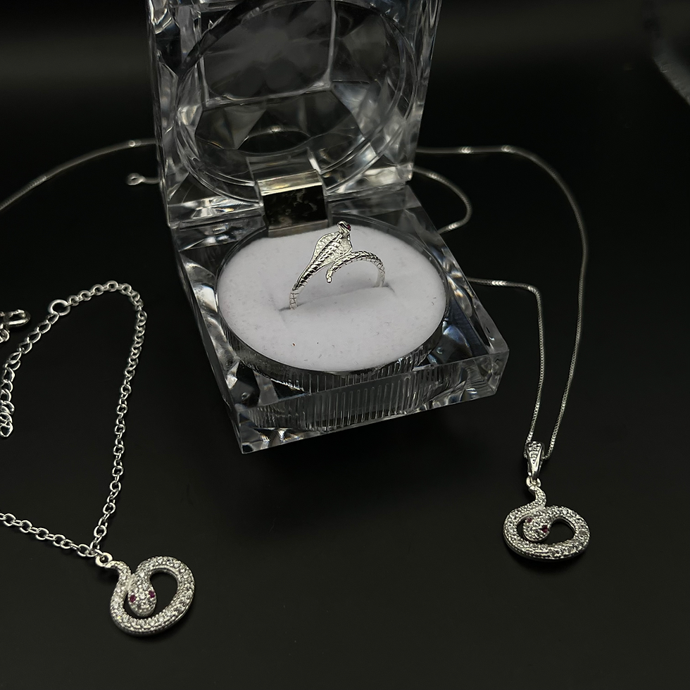 O Conjunto snake é a combinação perfeita de ousadia e elegância moderna. Com um design inspirado em serpentes, este conjunto é ideal para adicionar um toque de mistério e sofisticação a qualquer ocasião, desde um evento especial até o dia a dia. Sinta-se única e confiante com este conjunto que exala estilo e personalidade.